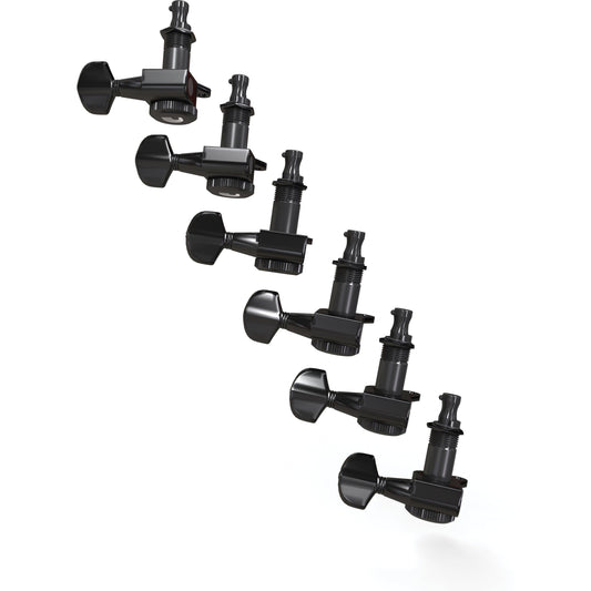 D'Addario Auto-Trim Locking Tuning Machines, 6 In-Line setup, Black