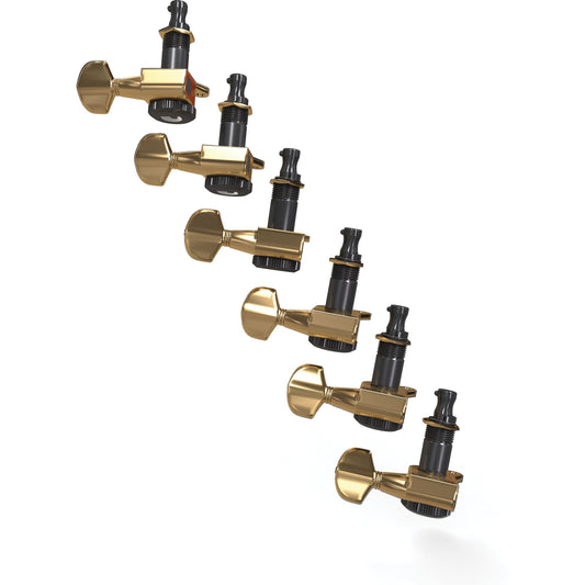 D'Addario Auto-Trim Locking Tuning Machines, 6 In-Line setup, Gold