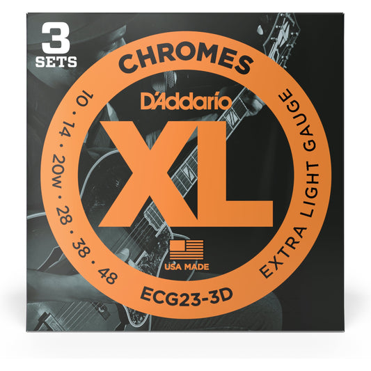 D'Addario ECG23 Chromes Flat Wound Electric Guitar Strings, Extra Light, 10-48, 3 Sets