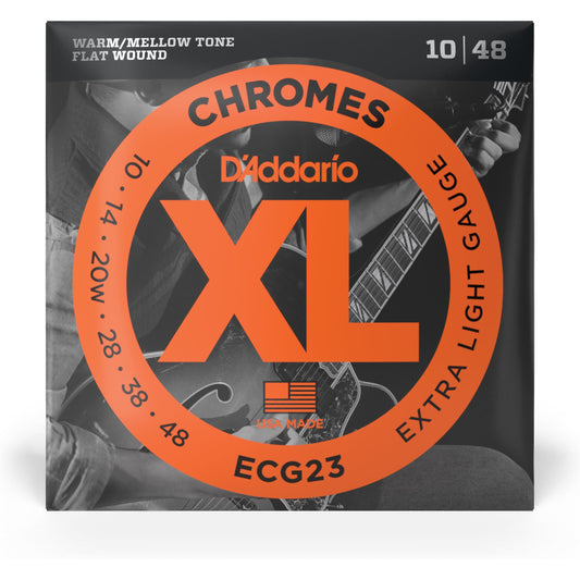 D'Addario ECG23 Chromes Flat Wound Electric Guitar Strings, Extra Light, 10-48