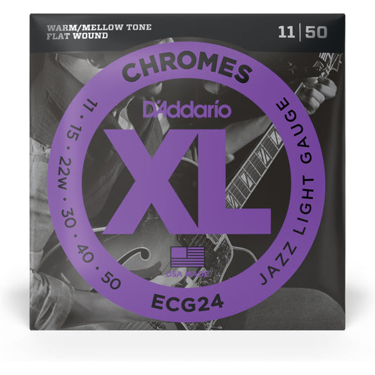 D'Addario ECG24 Chromes Flat Wound Electric Guitar Strings, Jazz Light, 11-50