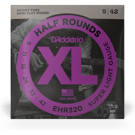 D'Addario EHR320 Half Round Electric Guitar Strings, Super Light, 9-42