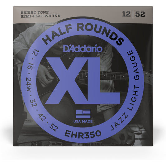 D'Addario EHR350 Half Round Electric Guitar Strings, Jazz Light, 12-52
