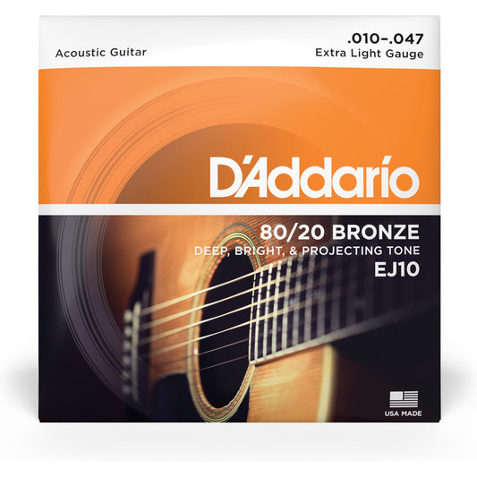 D'Addario EJ10 Bronze Acoustic Guitar Strings, Extra Light, 10-47