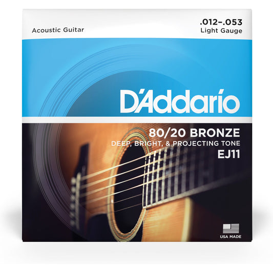 D'Addario EJ11 80/20 Bronze Acoustic Guitar Strings, Light, 12-53