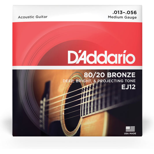 D'Addario EJ12 80/12 Bronze Acoustic Guitar Strings, Medium, 13-56