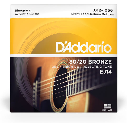 D'Addario EJ14 80/20 Bronze Acoustic Guitar Strings, Light Top/Medium Bottom/Bluegrass, 12-56