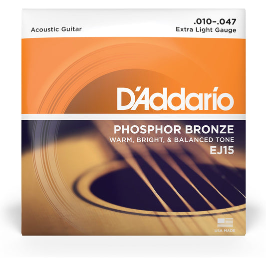 D'Addario EJ15 Phosphor Bronze Acoustic Guitar Strings, Extra Light, 10-47