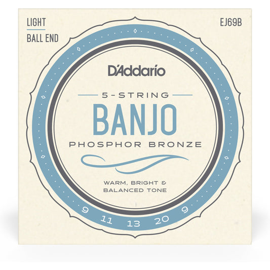 D'Addario EJ69 5-String Ball-End Banjo Strings, Phosphor Bronze, Light, 9-20