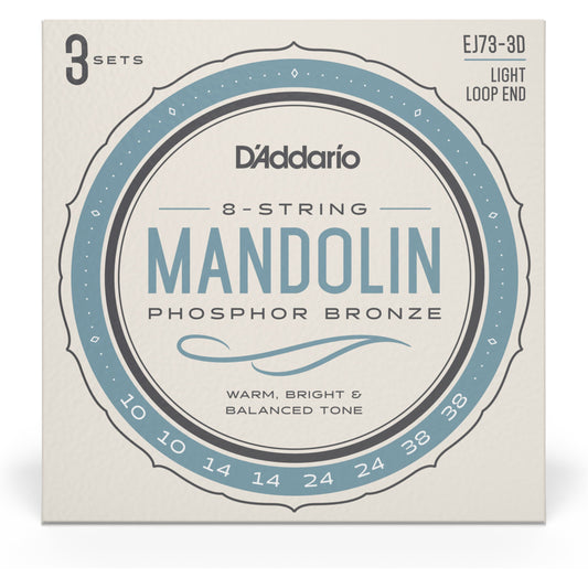 D'Addario EJ73 Mandolin Strings, Phosphor Bronze, Light, 10-38, 3 Sets