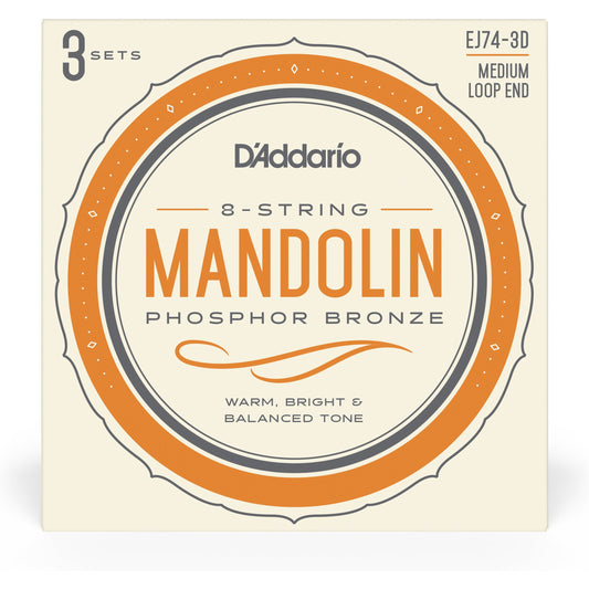 D'Addario EJ74-3D Mandolin Strings, Phosphor Bronze, Medium, 11-40, 3 Sets