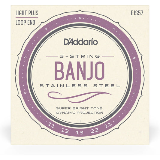 D'Addario EJS57 5-String Banjo Strings, Stainless Steel, Custom Medium, 11-22