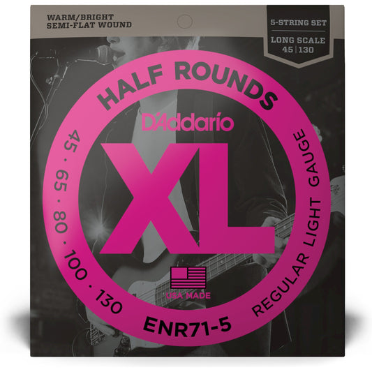 D'Addario ENR71-5 Half Round 5-String Bass Guitar Strings, Regular Light, 45-130, Long Scale