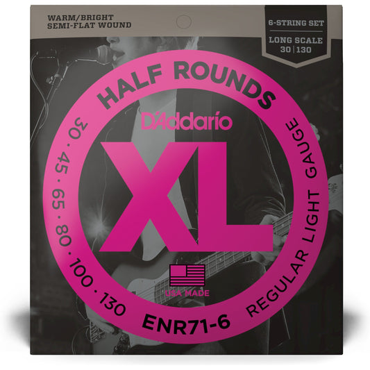 D'Addario ENR71-6 Half Round Bass Guitar Strings, Regular Light, 30-130, Long Scale