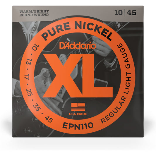 D'Addario EPN110 Pure Nickel Electric Guitar Strings, Regular Light, 10-45
