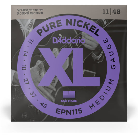 D'Addario EPN115 Pure Nickel Electric Guitar Strings, Blues/Jazz Rock, 11-48