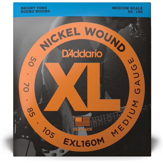 D'Addario EXL160M Nickel Wound Bass Guitar Strings, Medium, 50-105, Medium Scale