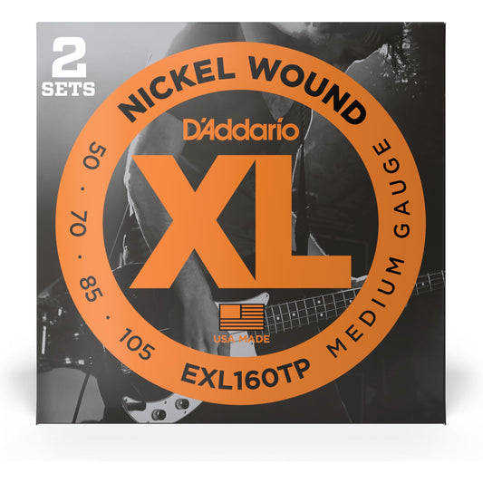 D'Addario EXL160TP Nickel Wound Bass Guitar Strings, Medium, 50-105, 2 Sets, Long Scale
