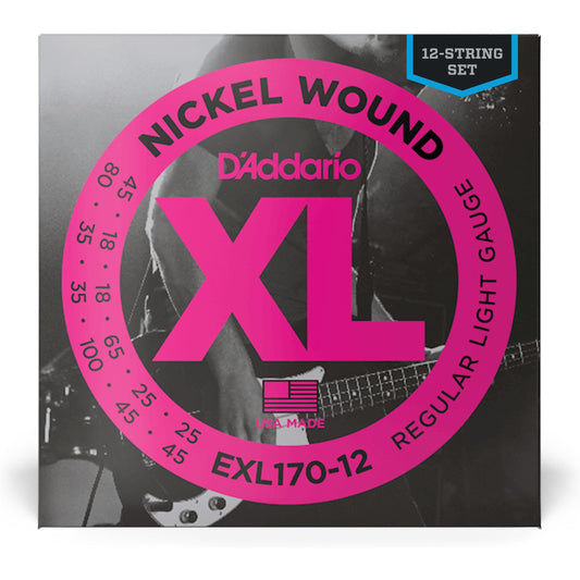 D'Addario EXL170-12 Nickel Wound Bass Guitar Strings, Light, 18-45