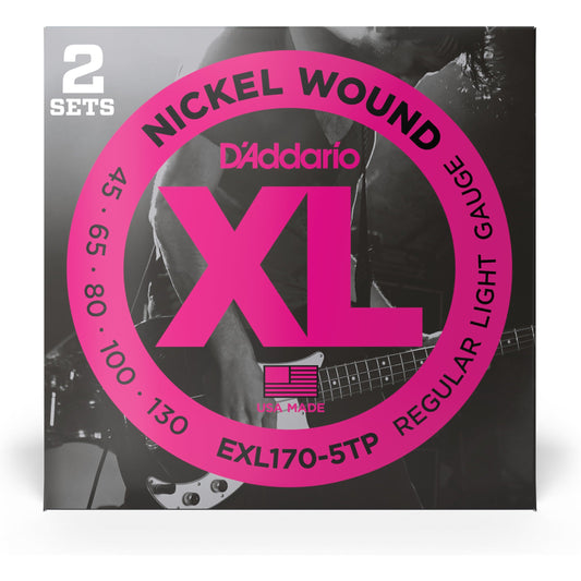 D'Addario EXL170-5TP Nickel Wound Bass Guitar Strings, Light, 45-130, 2 Sets, Long Scale