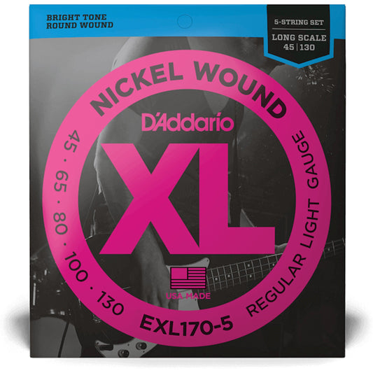 D'Addario EXL170-5 5-String Nickel Wound Bass Guitar Strings, Light, 45-130, Long Scale