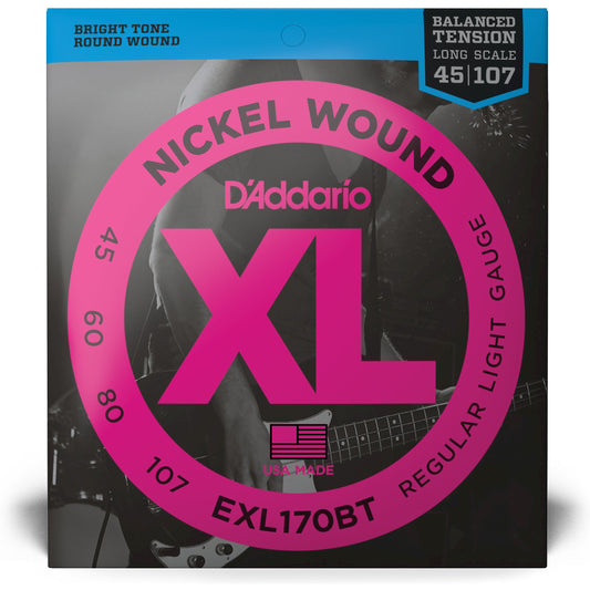 D'Addario EXL170BT Nickel Wound Bass Guitar Strings, Balanced Tension Regular Light, 45-107, Long Scale