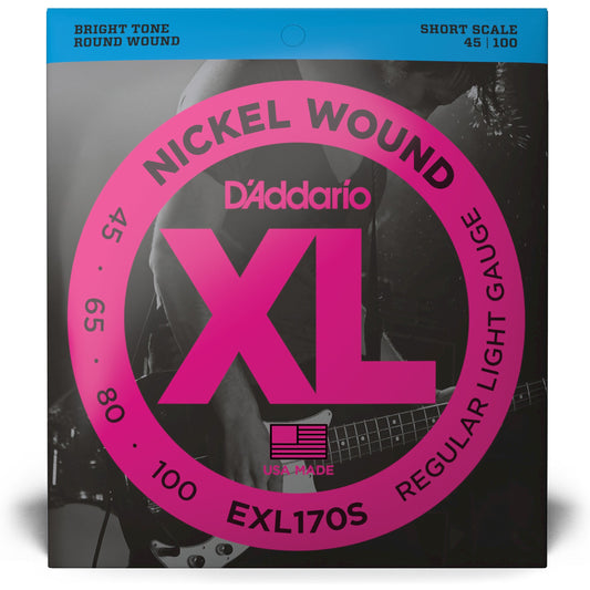 D'Addario EXL170S Nickel Wound Bass Guitar Strings, Light, 45-100, Short Scale