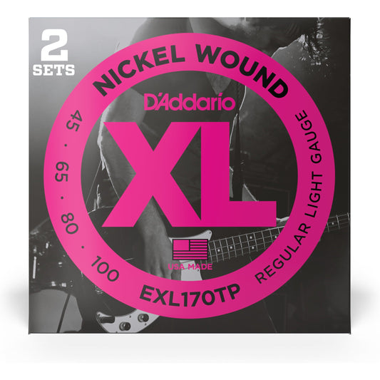 D'Addario EXL170TP Nickel Wound Bass Guitar Strings, Light, 45-100, 2 Sets, Long Scale
