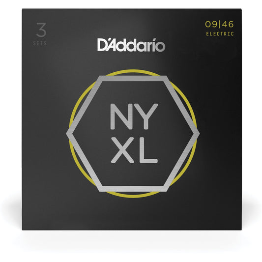 D'Addario NYXL0946-P Nickel Wound Electric Guitar Strings, Super Light Top / Regular Bottom, 9-46, 3 Sets