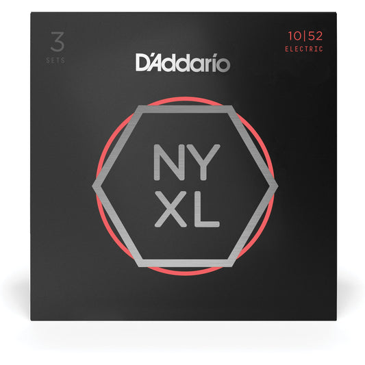 D'Addario NYXL1052-3P Nickel Wound Electric Guitar Strings, Light Top / Heavy Bottom, 10-52, 3 Sets
