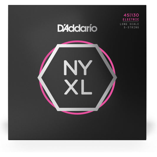 D'Addario NYXL45130 Nickel Wound Bass Guitar Strings, 5-string Regular Light, 45-130, Long Scale