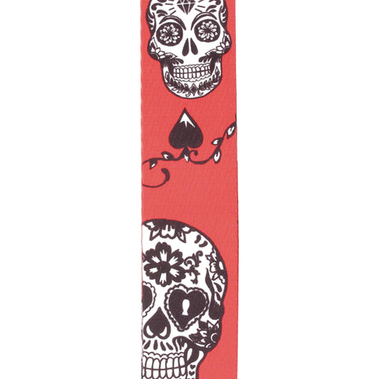D'Addario Polyester Guitar Straps, Sugar Skulls, Red
