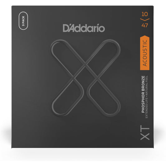 D'Addario XTAPB1047 XT Phosphor Bronze Acoustic Guitar Strings, Light, 10-47, 3 Sets