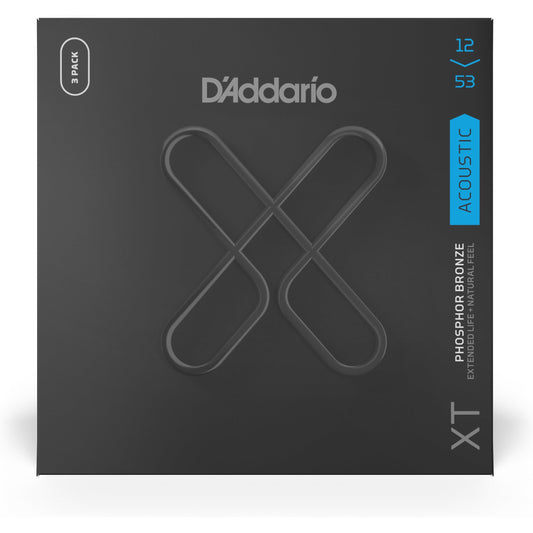 D'Addario XTAPB1253 XT Phosphor Bronze Acoustic Guitar Strings, Light, 12-53, 3 Sets