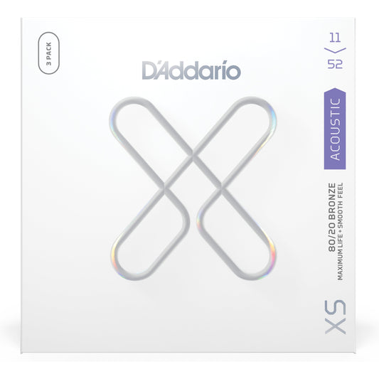 D'Addario 11-52 Custom Light, XS 80/20 Bronze Coated Acoustic Guitar Strings 3-Pack