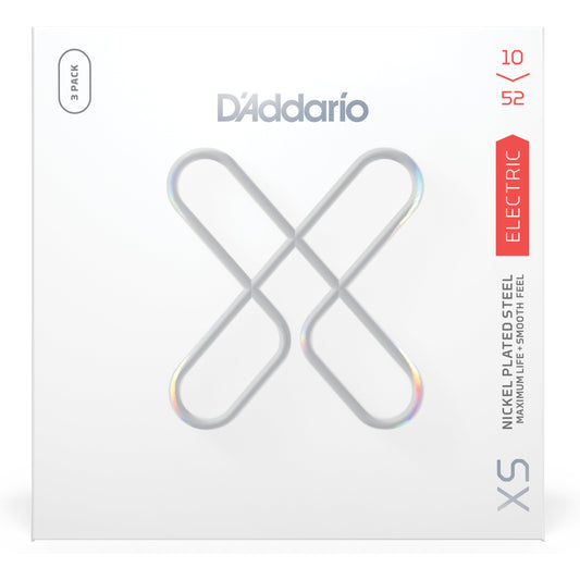 D'Addario 10-52 Light Top/Hvy Btm, XS Nickel Coated Electric Guitar Strings 3-Pack