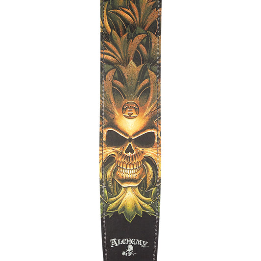 D'Addario Alchemy Leather Guitar Strap, Green Skull