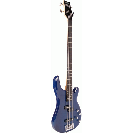 Ashton AB4TDB Bass Guitar Pack w/ Gig Bag, Strap & Lead (Transparent Dark Blue)