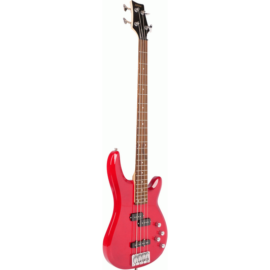 Ashton AB4TRD Bass Guitar Pack w/ Gig Bag, Strap & Lead (Transparent Red)