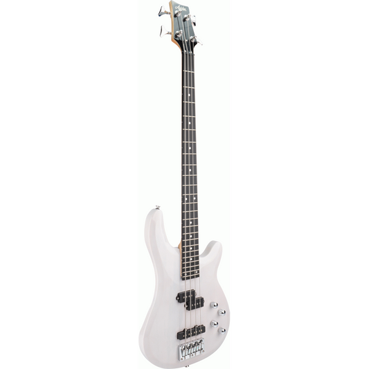 Ashton AB4TW Bass Guitar Pack w/ Gig Bag, Strap & Lead (Transparent White)