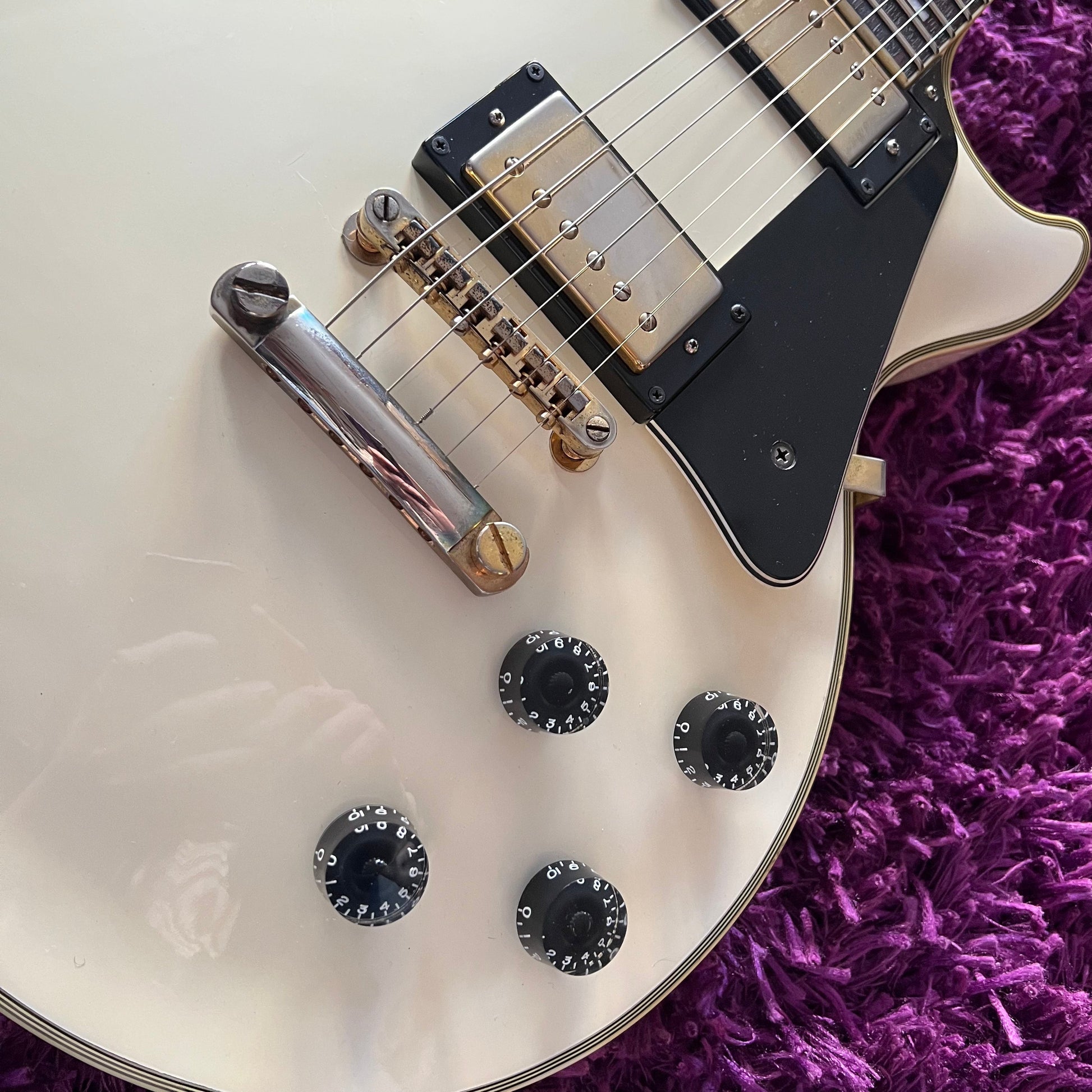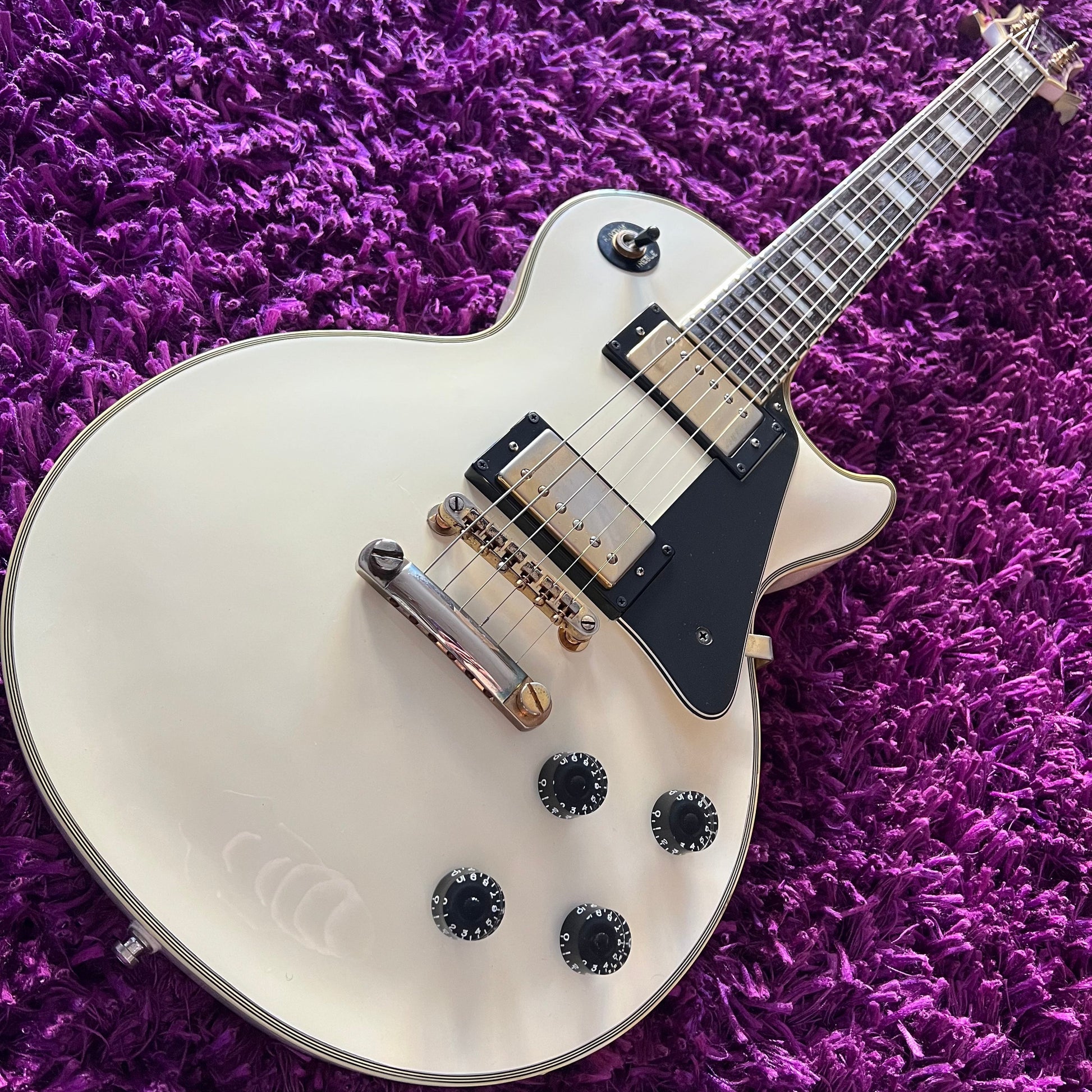 Straddling a nice median between cheaper Chinese made Les Paul style guitars and the ever expensive USA made Les Pauls, this vintage white Les Paul Custom is part of the Epiphone by Gibson range and made to an extremely high standard by the well regarded Unsung factory in Korea. It was made in 1999 and uses all the traditional woods and construction techniques used by Gibson at a fraction of the price!