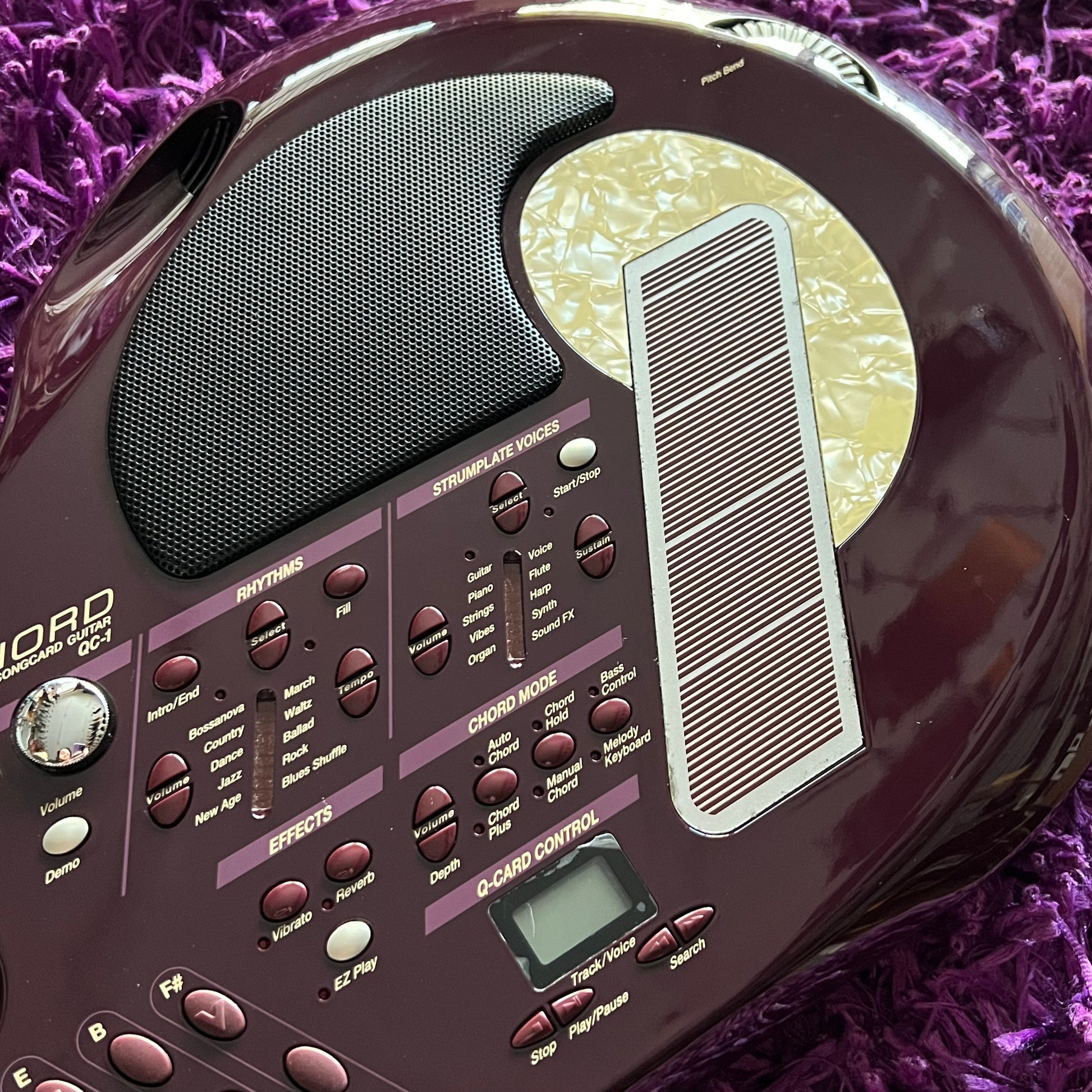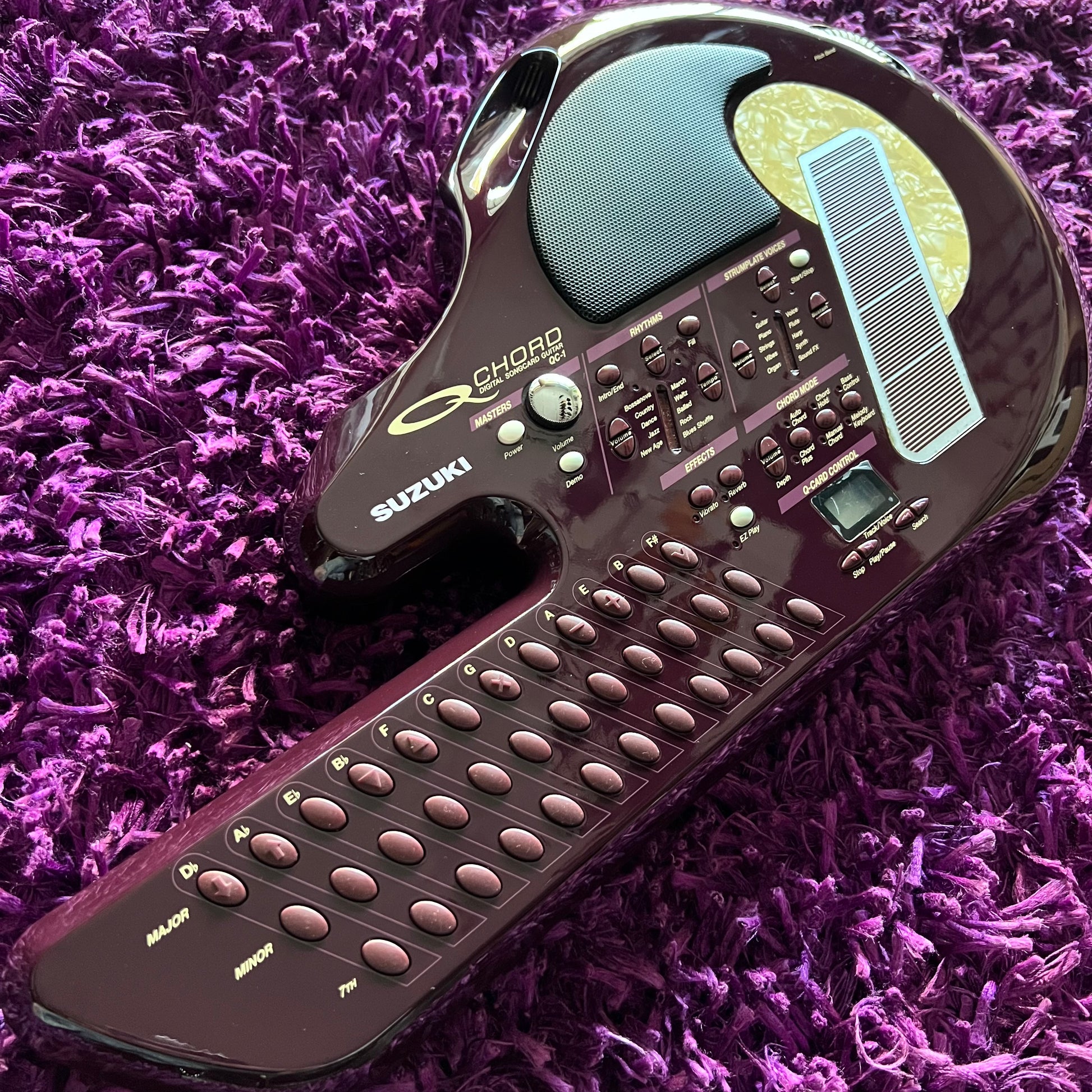 The QChord is part of the Omnichord series by Suzuki and was first released in 2000. Combining the technology of a basic keyboard along with an electric guitar for an instrument that is not only easy to play, but also very portable, Suzuki crafted a highly original and unique instrument that is accessible for all levels of musical skill. In terms of design the QChord is divided into three separate sections. These consist of a “strum plate” that is touch sensitive along with a rhythm section and a section from the chord buttons. Players have the option to either use a combination of these sections or use them independently. This instrument also has a 2-digit LCD, 2-LED Light bar, and 12 LEDS.