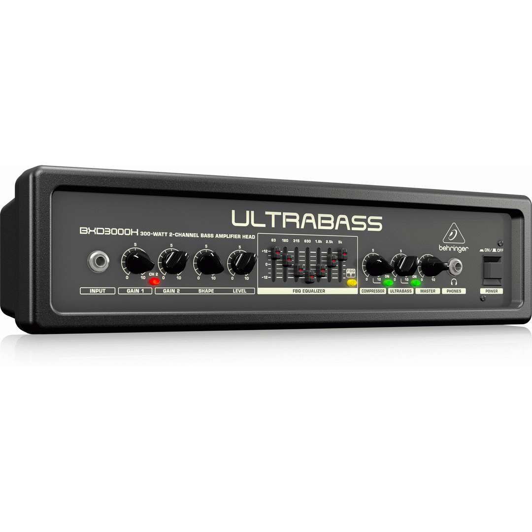 The ULTRABASS BXD3000H is a 300-Watt 2-channel bass amp head designed specifically for the bass player who requires the ultimate in tonal versatility. With 300 Watts of immaculate Class-D output, you’ll have more than enough power to serve up tight and punchy bottom-end for a wide range of performance applications.