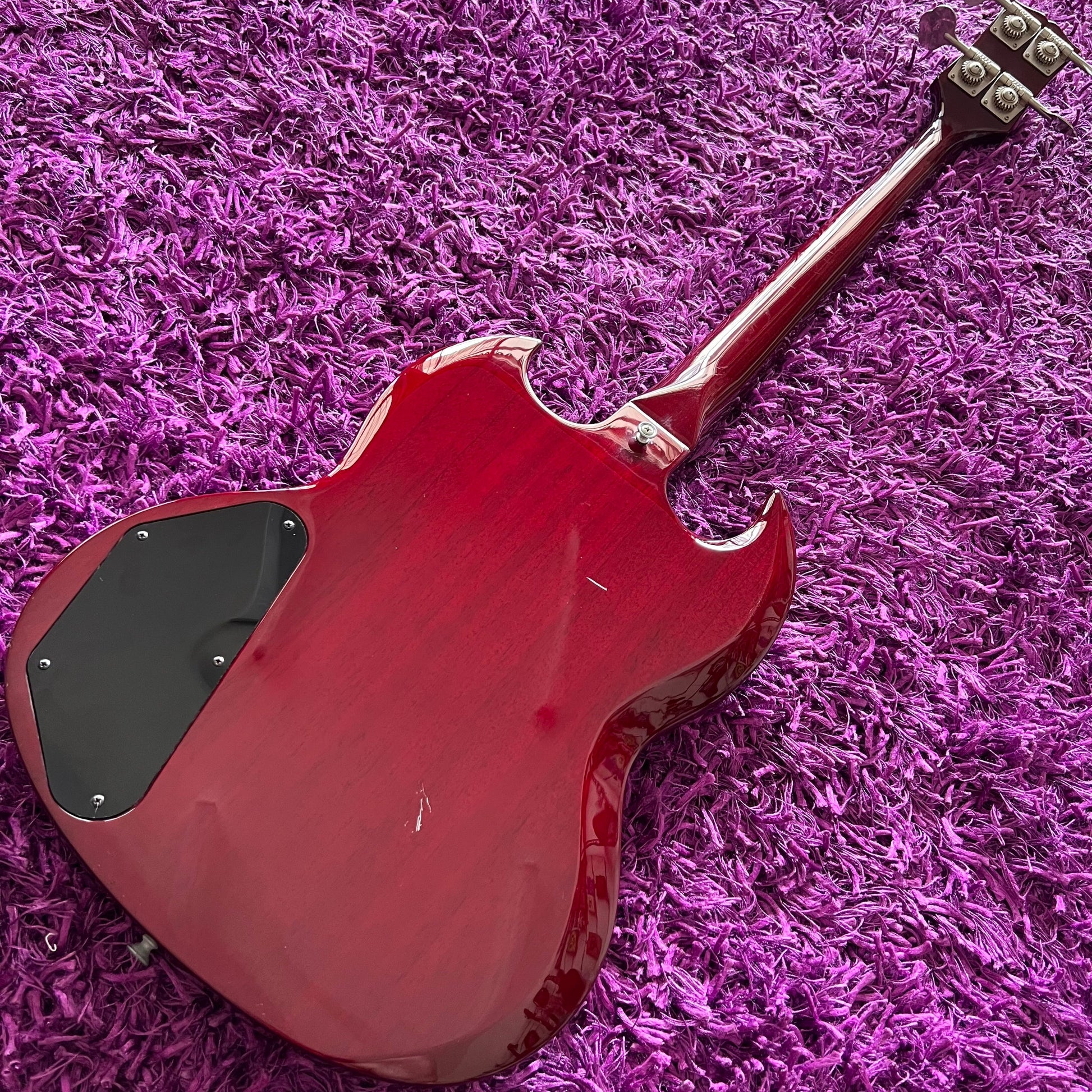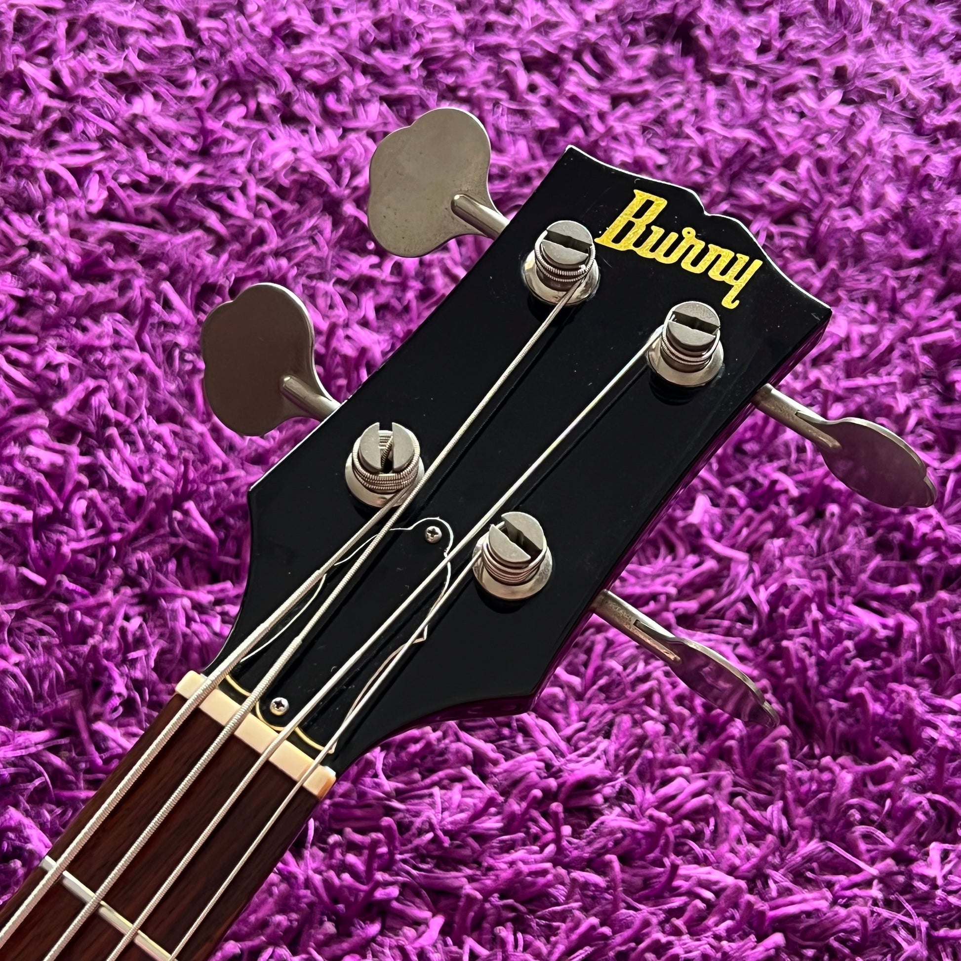 The REB-SG series of basses was Burny/Fernandes Japan's take on the famous EB basses made by Gibson in the 60s and 70s. This model dates to some time in the 90s and is equipped with two fat Gibson style pickups for all your doom and psychadelic tones. The body and neck are mahogany with finished in a dark cherry with a set neck design making it extremely comfortable to play. The guitar is in great condition for its age with the expected amount of wear for a vintage guitar, all original parts and no cracks or breaks. The frets are original and have loads of life left in them. This particular model is short scale, measuring 30.3" (770mm) from nut to saddle. This model would be ideal for guitar players wanting a fast neck or someone with small hands. The pickups sound huge and warm despite the guitar's small stature.