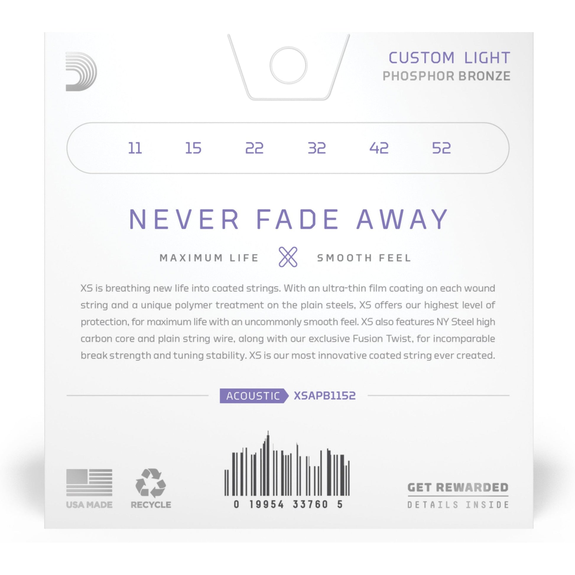 - XS Phosphor Bronze strings have the longest life of any D’Addario acoustic string, thanks to the ultra-thin XS film coating.