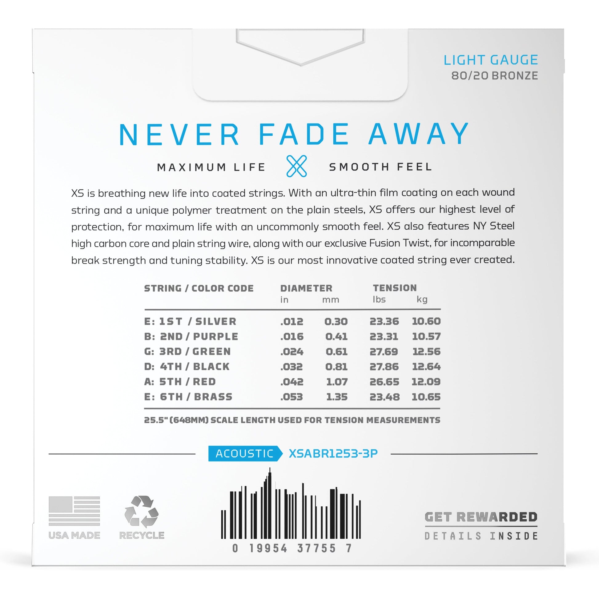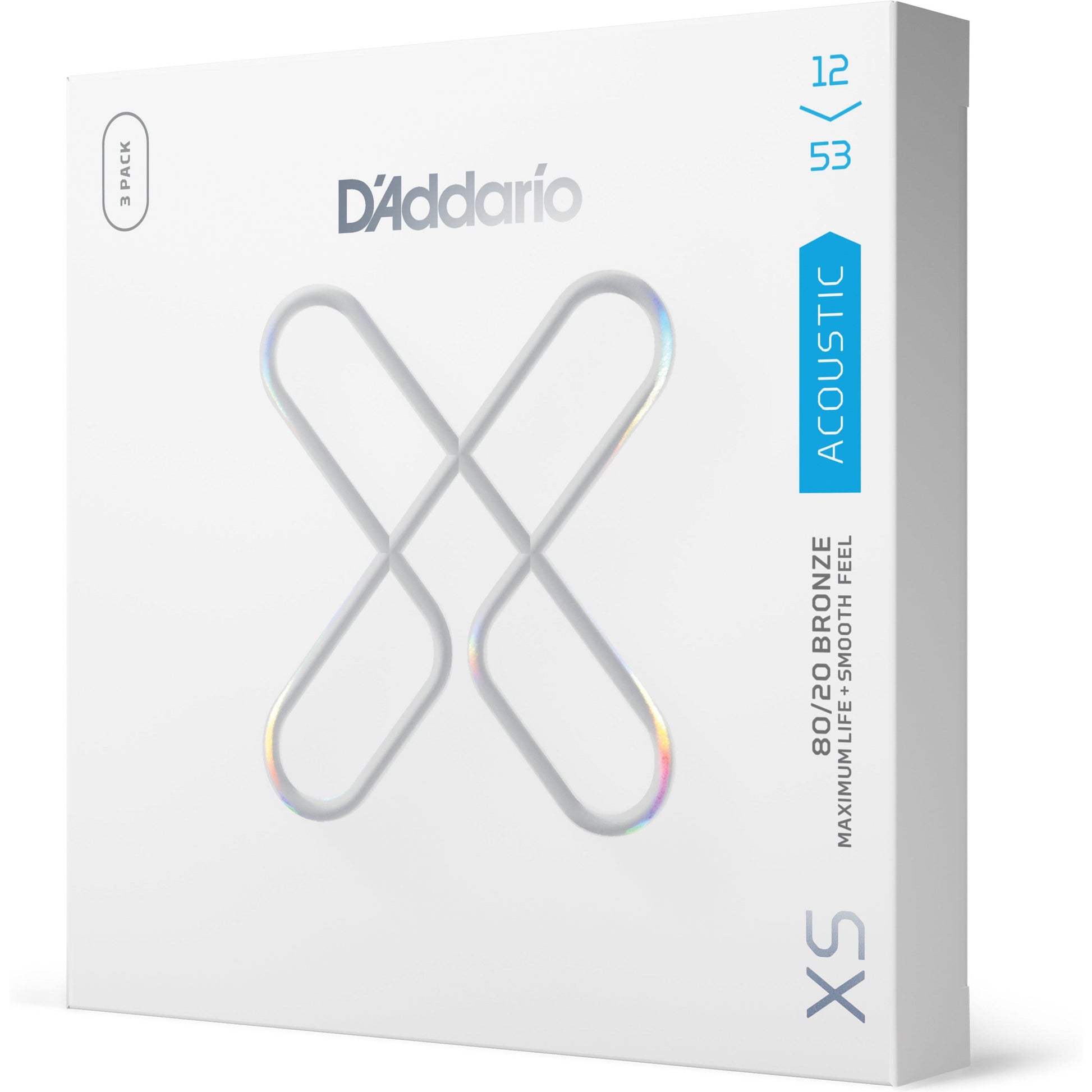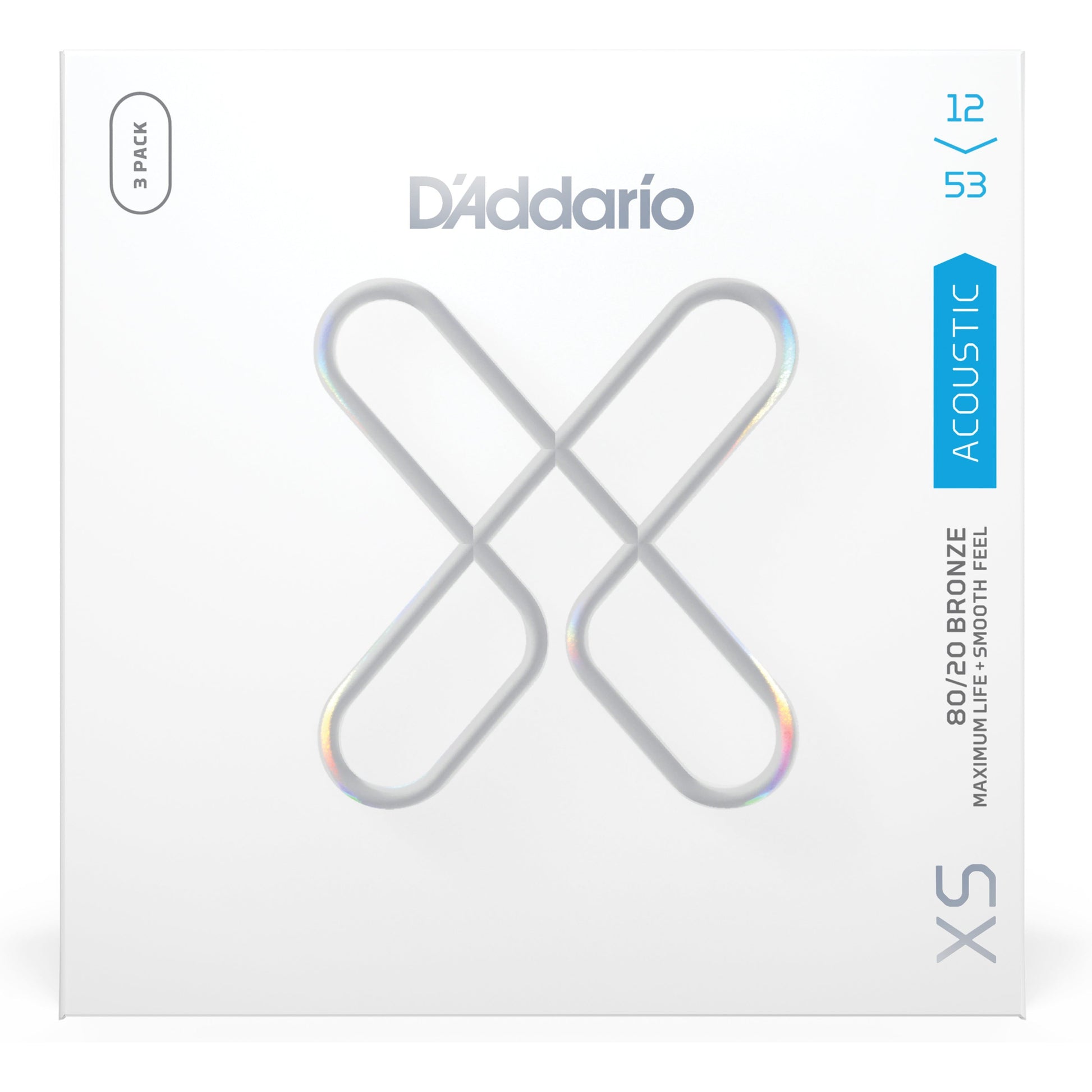 D'Addario 12-53 Regular Light, XS 80/20 Bronze Coated Acoustic Guitar Strings 3-Pack