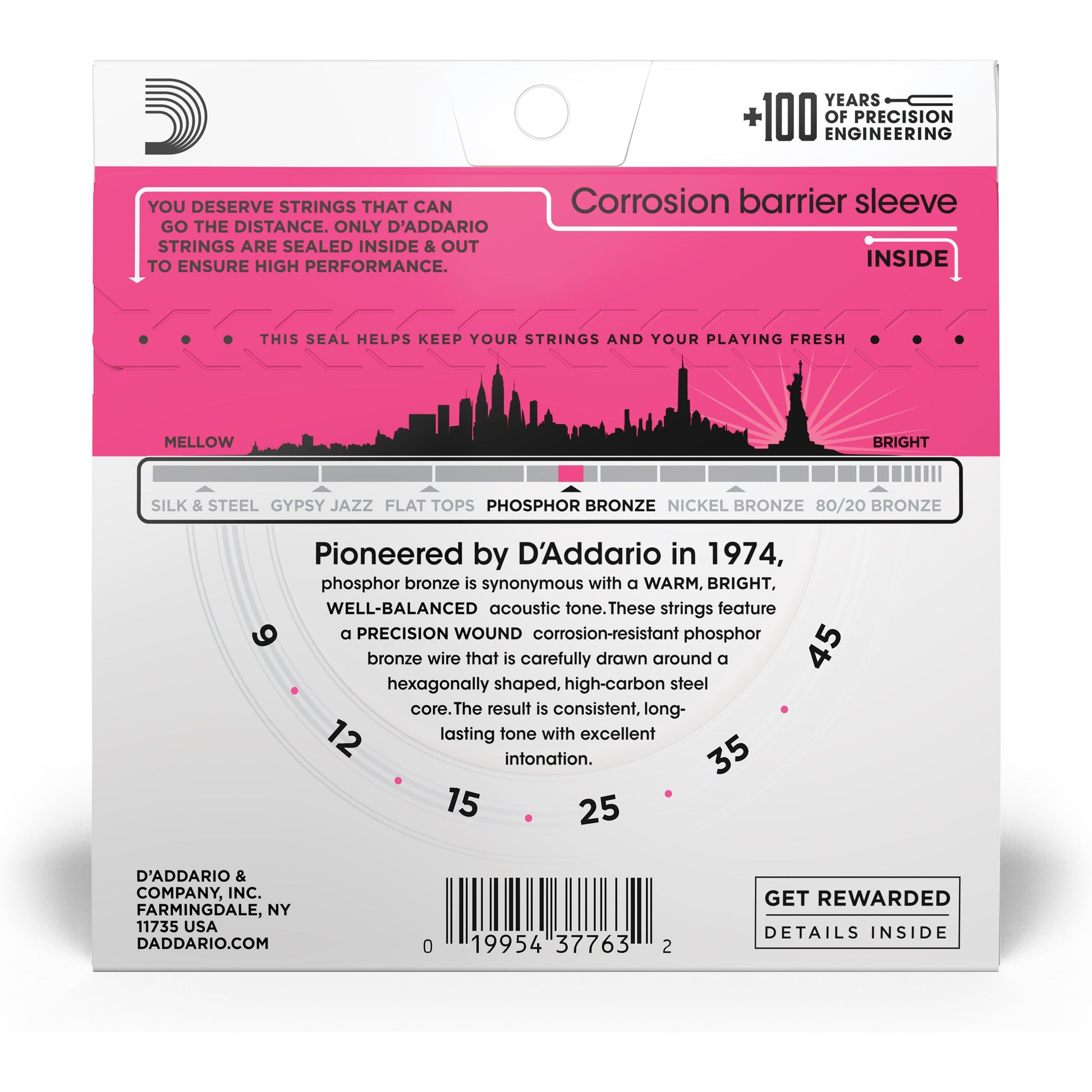 - Phosphor Bronze wrap wire provides tried-and-true D’Addario acoustic tone, with beautiful balance and warmth suitable for all musical genres