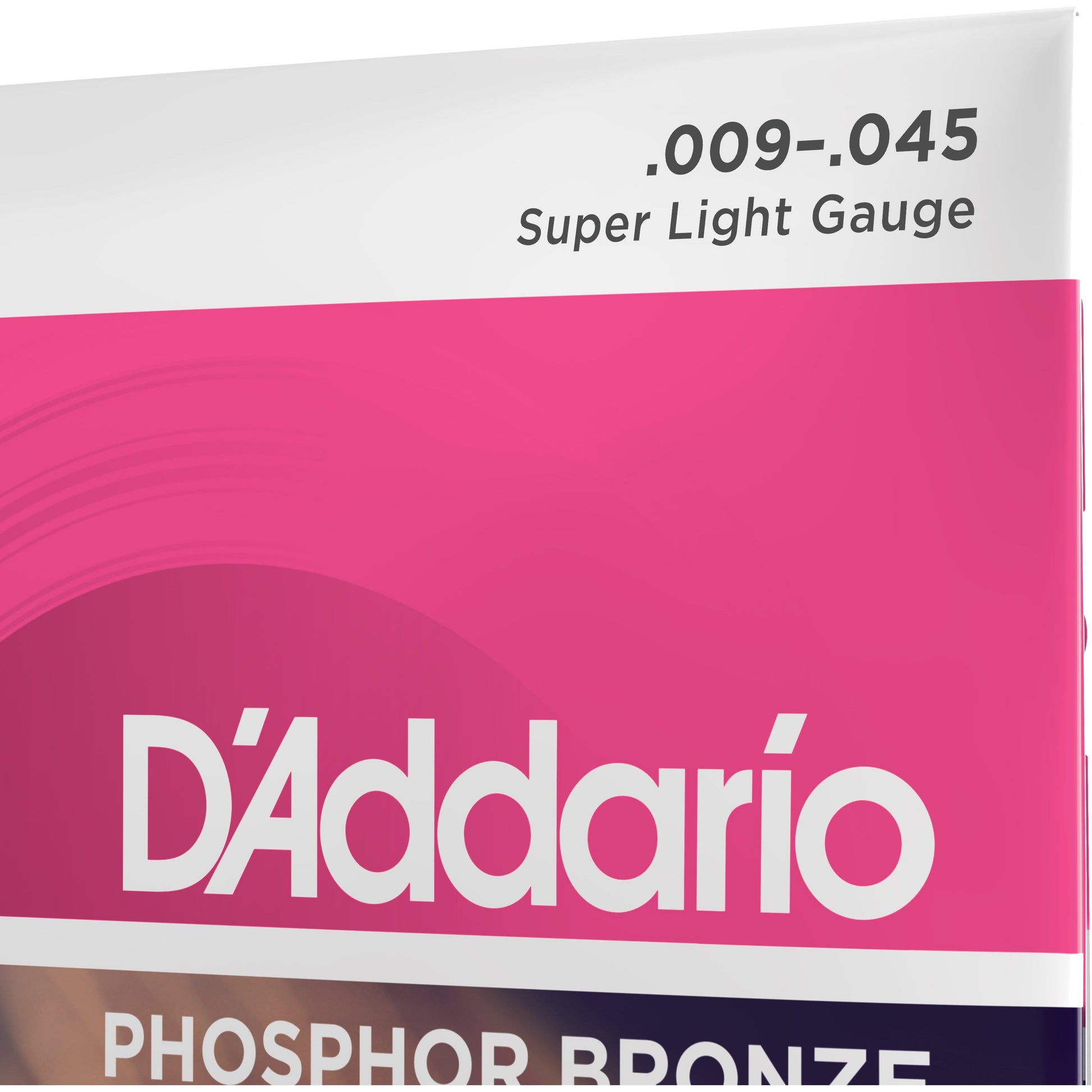 D'Addario 9-45 Super Light, Phosphor Bronze Acoustic Guitar Strings