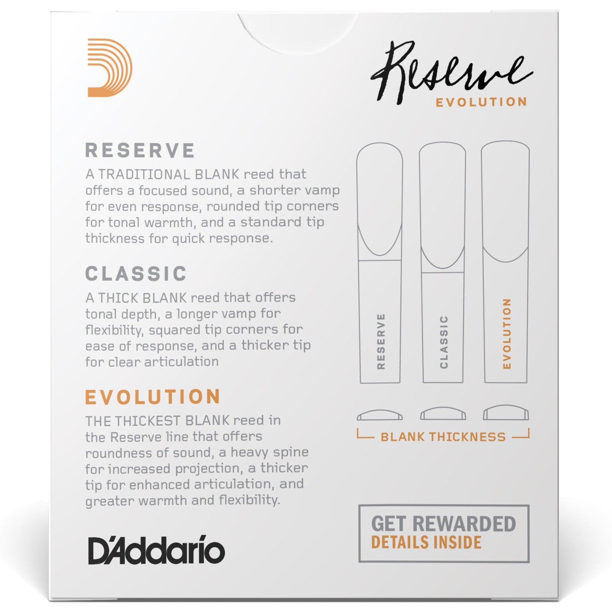 D'Addario Reserve Evolution Bb Clarinet Reeds, Strength 3.5+, 10-Pack