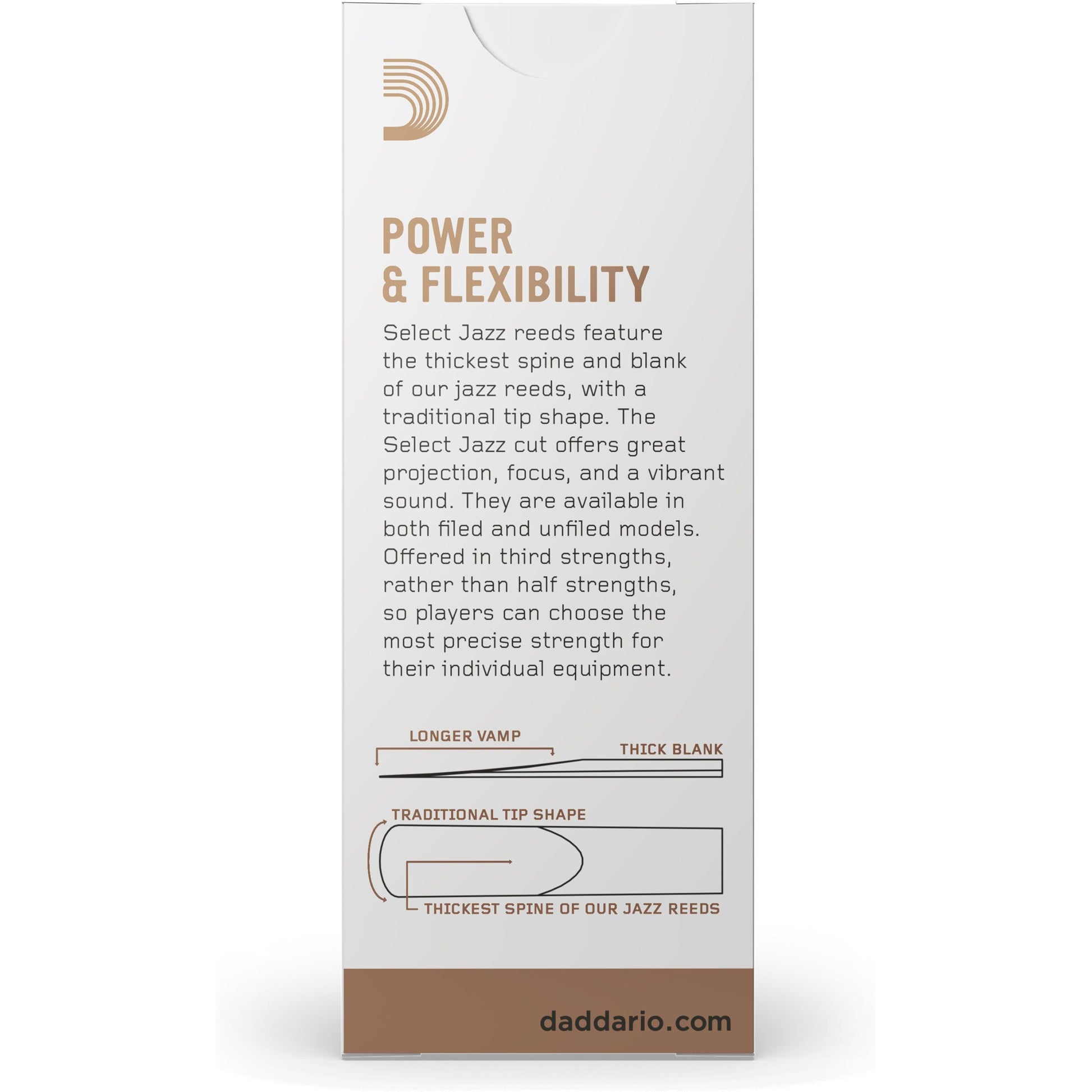 D'Addario Select Jazz Unfiled Baritone Saxophone Reeds, Strength 3 Hard, 5-Pack